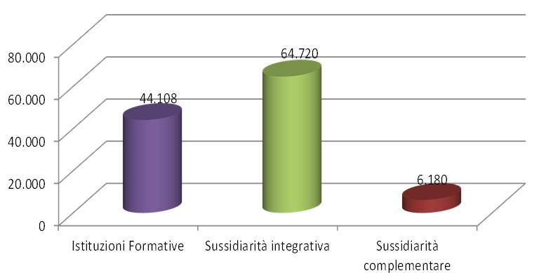 La partecipazione al sistema IeFP ha visto, per il 2013-14, includendo anche il IV anno, oltre 328 mila unità. Gli iscritti alla IeFP svolta a scuola nei quattro anni sono oltre 187 mila (57% del totale iscritti), per la larghissima maggioranza in sussidiarietà integrativa. Gli iscritti presso le Istituzioni Formative sono, nei quattro anni, oltre 141 mila (43% del totale).